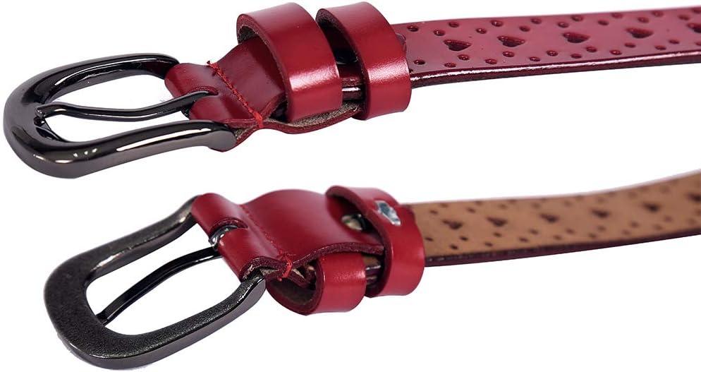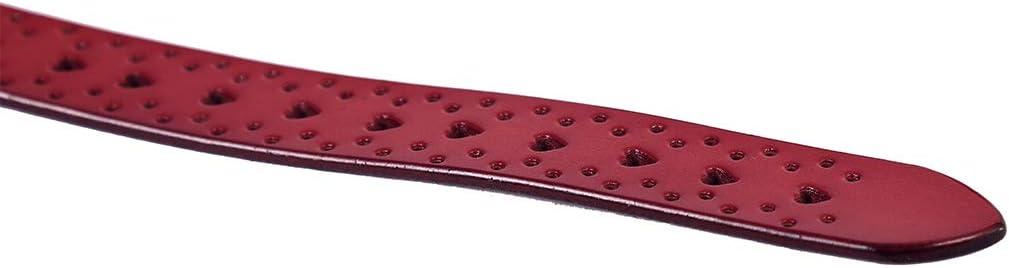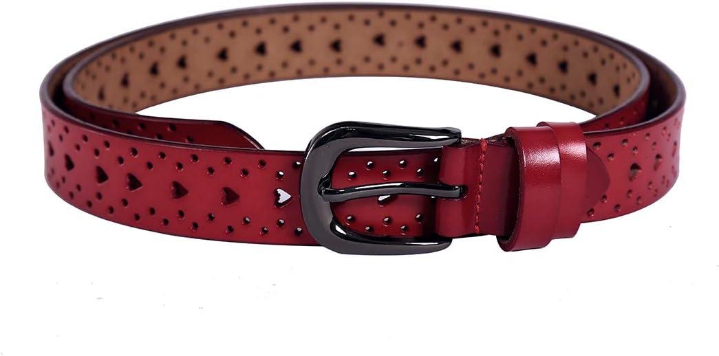 imageuxcell Women Carved Multihole Hollow Alloy Pin Buckle Leather BeltBurgundyheart