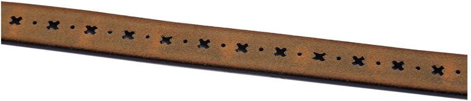 uxcell Women Carved Multi-hole Hollow Alloy Pin Buckle Leather Belt(Dark Brown-flowers)