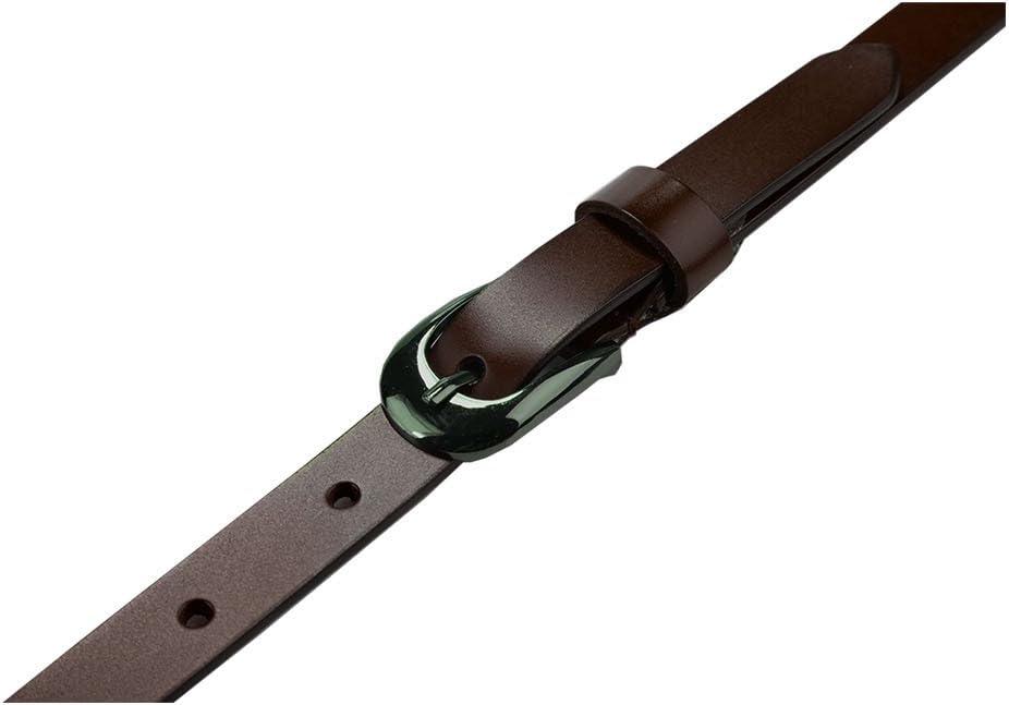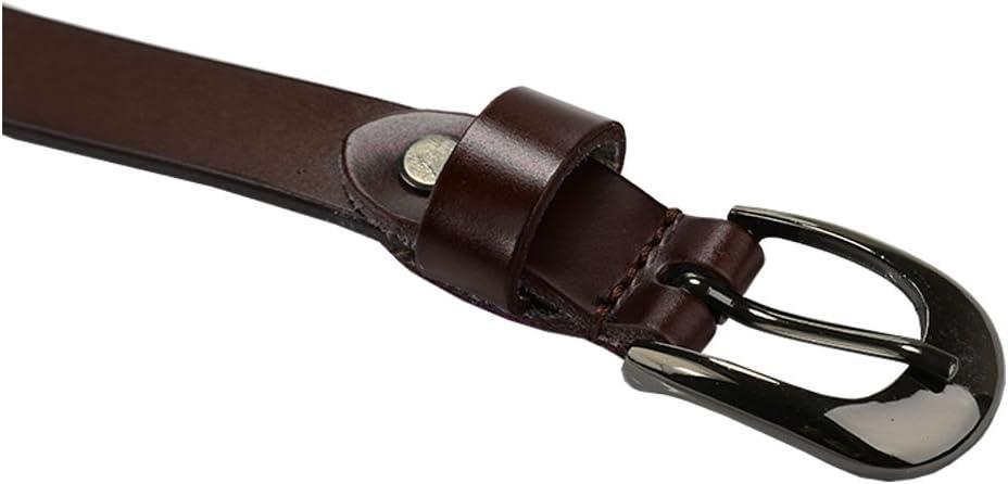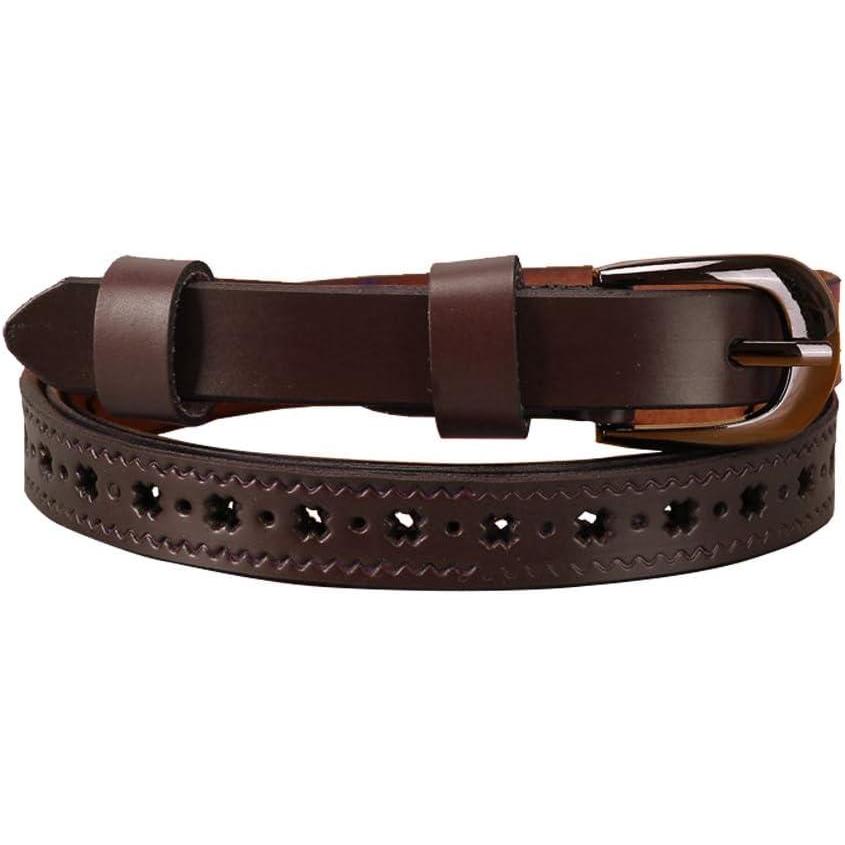 imageuxcell Women Carved Multihole Hollow Alloy Pin Buckle Leather BeltDark Brownstars