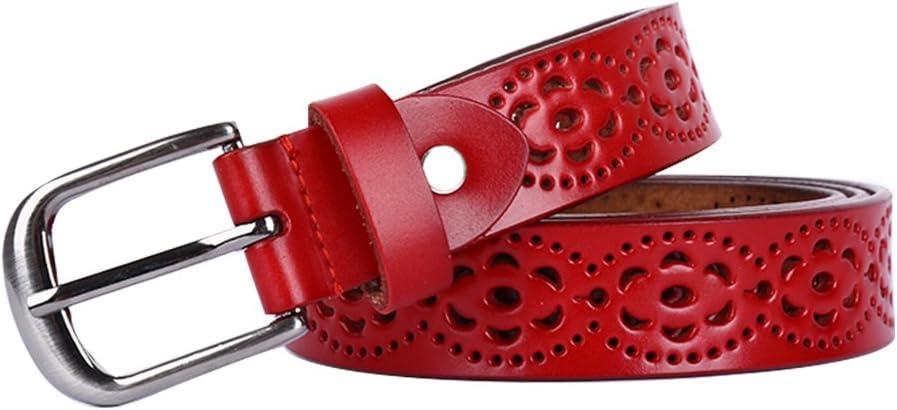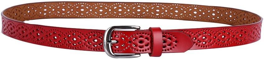 imageuxcell Women Carved Multihole Hollow Alloy Pin Buckle Leather BeltRedflowers
