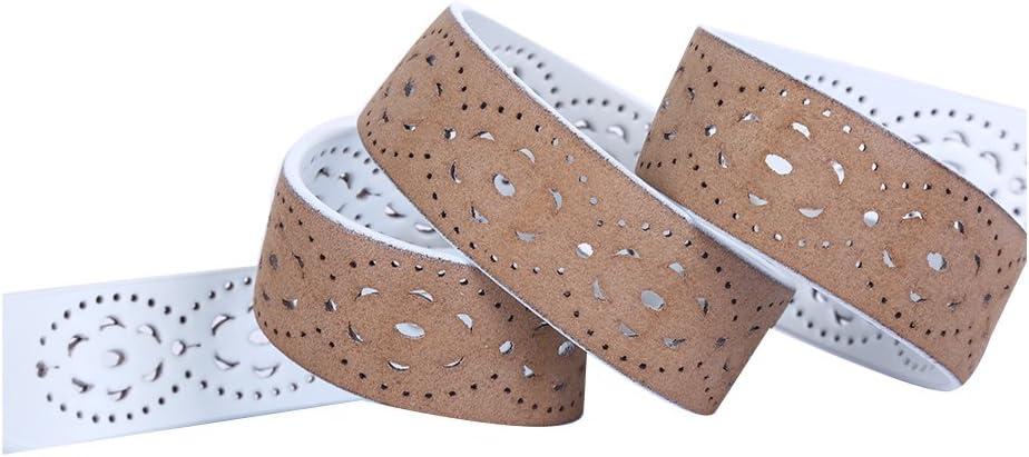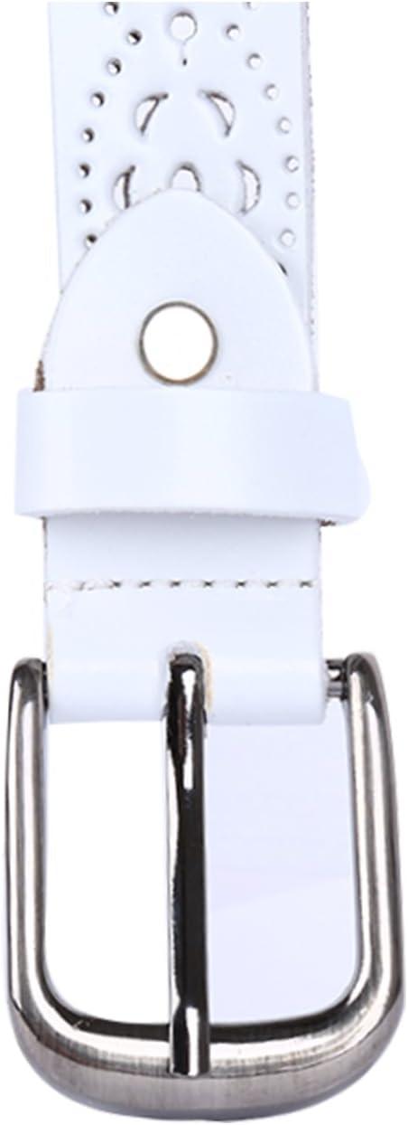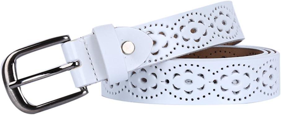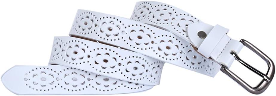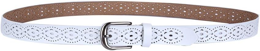 imageuxcell Women Carved Multihole Hollow Alloy Pin Buckle Leather BeltWhiteflowers
