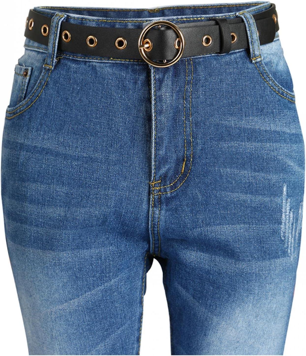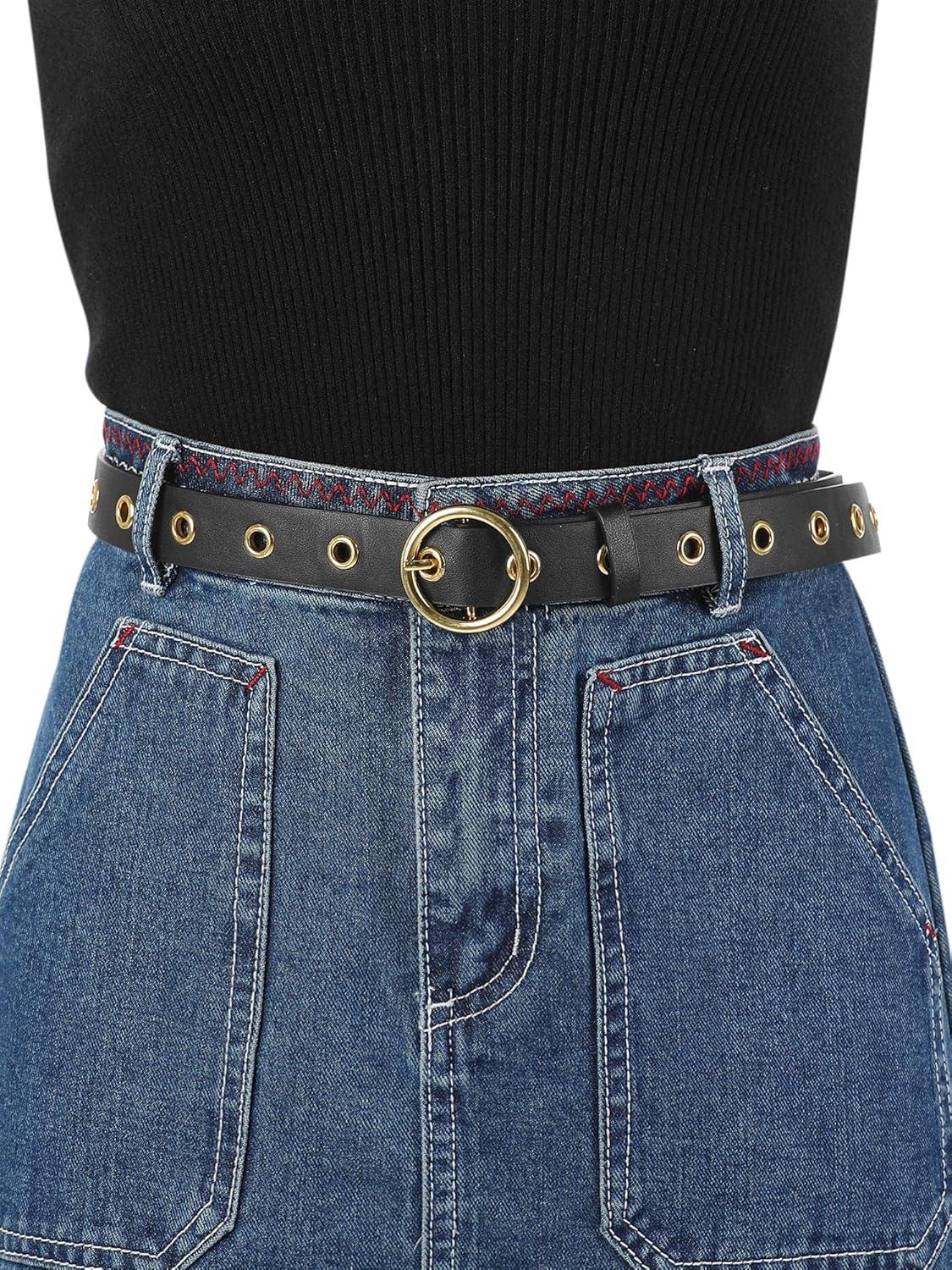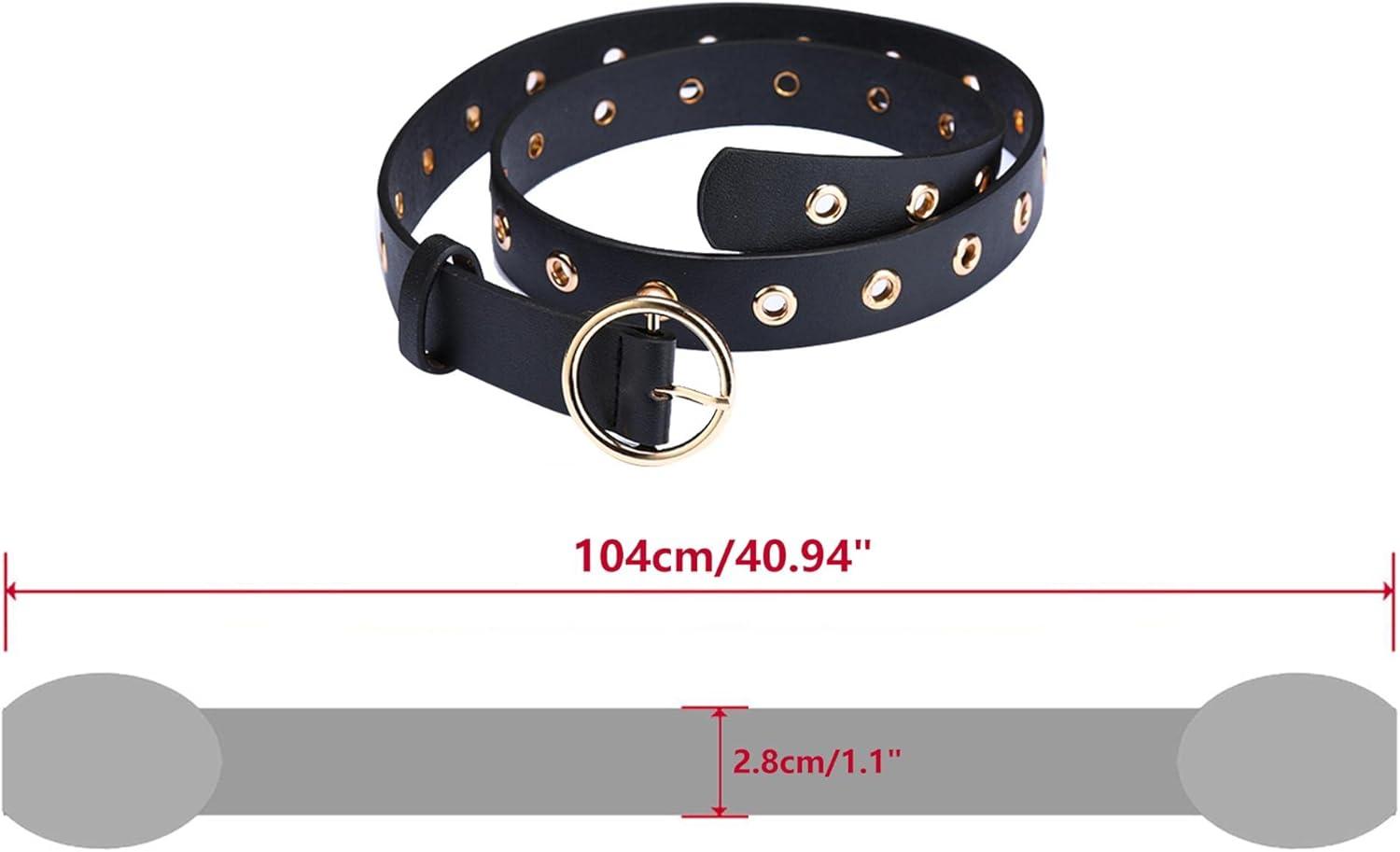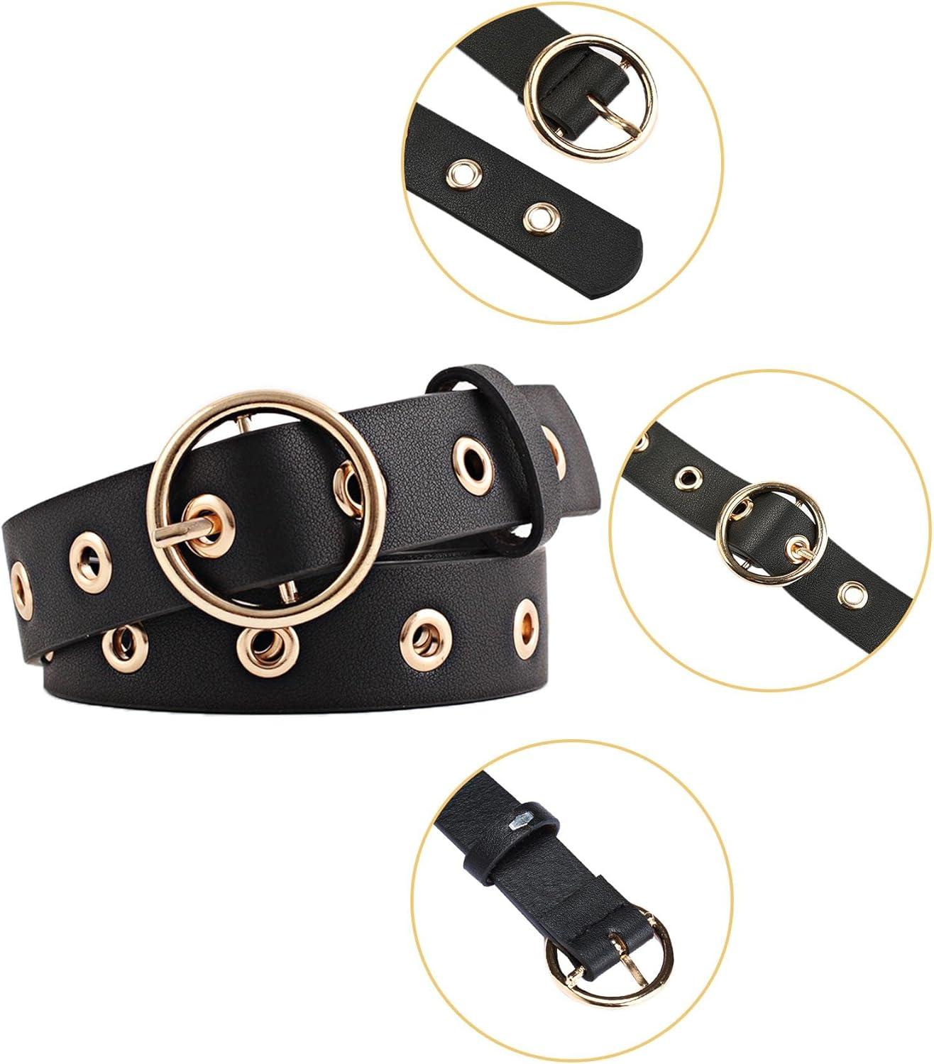 imageuxcell Womens Leather Belt for Jeans Dress Pants Studded Grommet with Circle Metal BuckleBlack