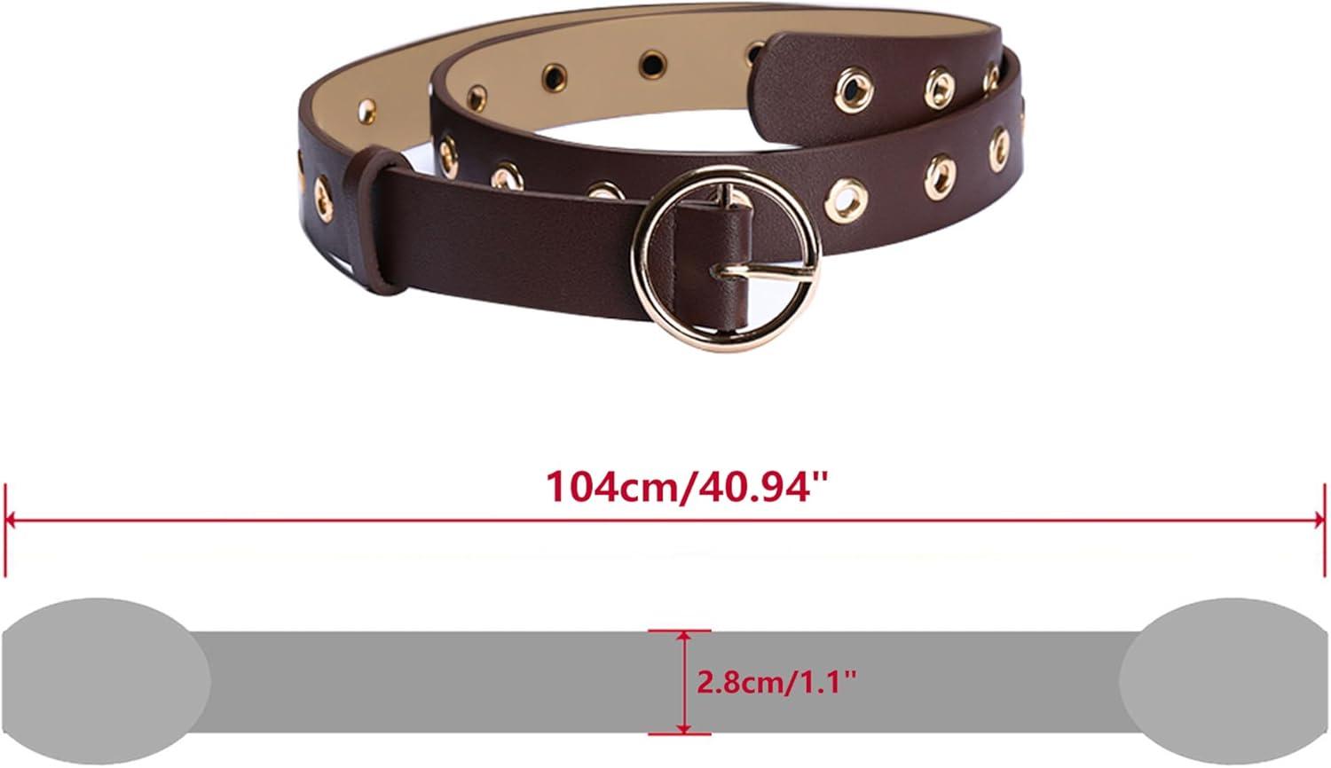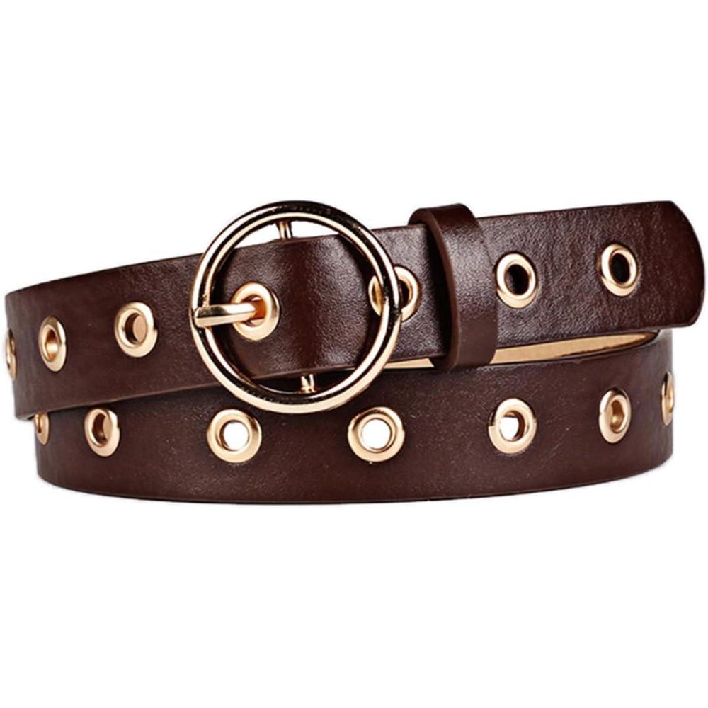 uxcell Womens Leather Belt for Jeans Dress Pants Studded Grommet with Circle Metal Buckle(Dark Brown)