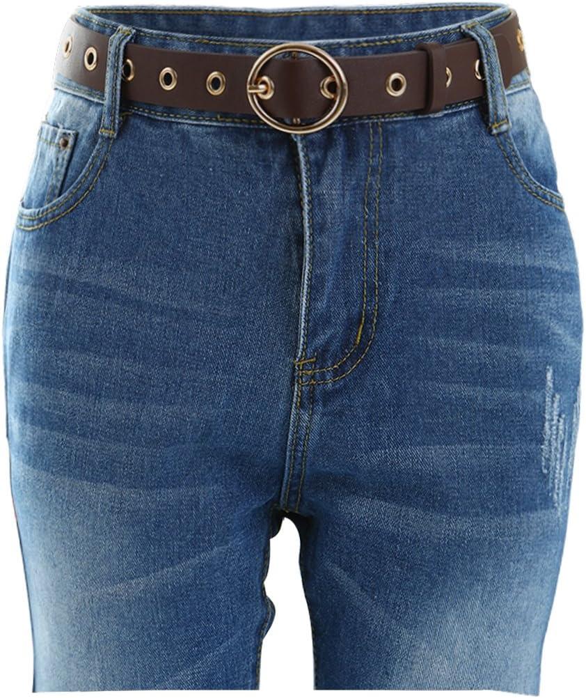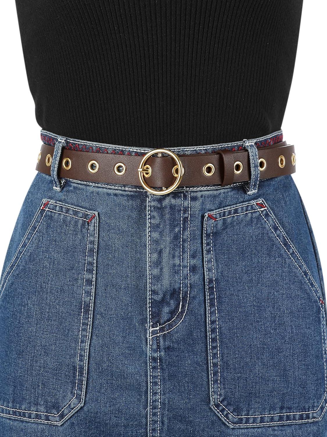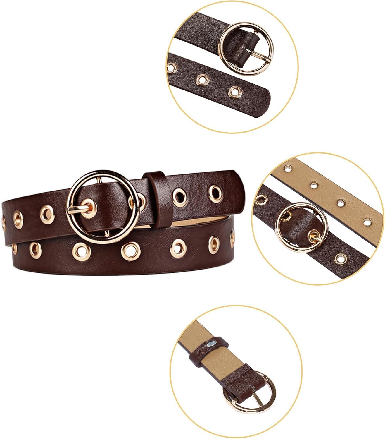 imageuxcell Womens Leather Belt for Jeans Dress Pants Studded Grommet with Circle Metal BuckleDark Brown