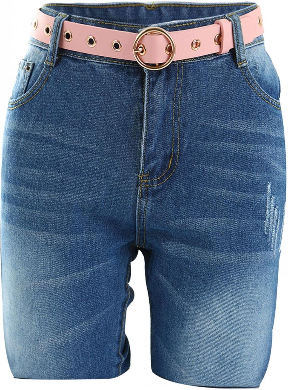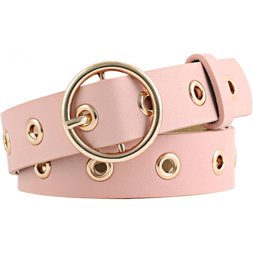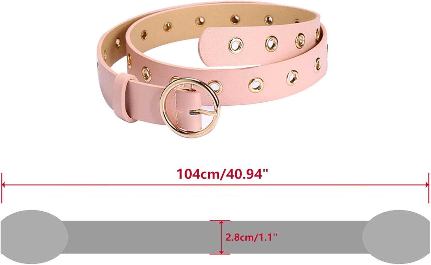 imageuxcell Womens Leather Belt for Jeans Dress Pants Studded Grommet with Circle Metal BucklePink