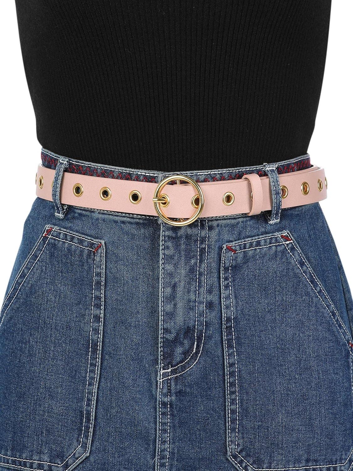 uxcell Womens Leather Belt for Jeans Dress Pants Studded Grommet with Circle Metal Buckle(Pink)